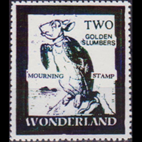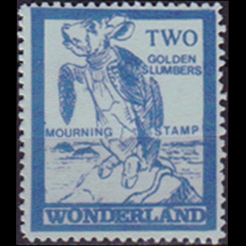 | Cinderella. Wonderland. 2GS issued 1 Jul.1965. Gerald King, upset over GB PO refusal to honor 100th Anniv.of L.Carroll's Alice in Wonderland created Wonderland Stamps. This is The Mock Turtle Mourning Stamp. Other Mock Turtle stamp designs are availa |