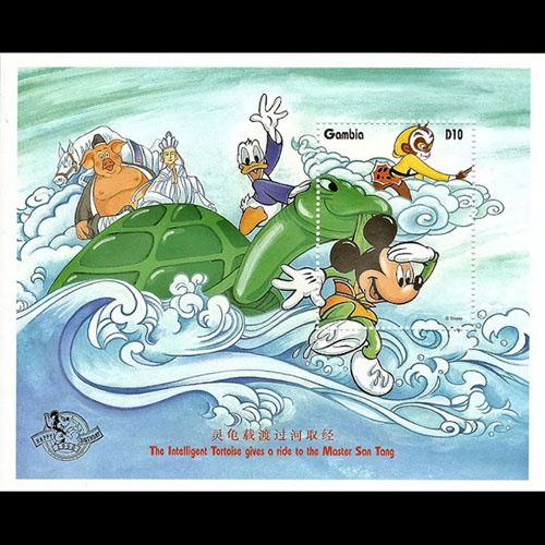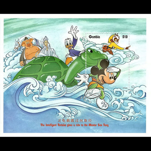 | Disney - 70th Anniv.of Mickey & Minnie. China classic novel. The intelligent Tortoise gives a ride to the Master San Tang. |