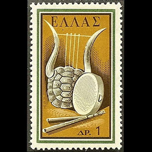 | Shows an ancient lyre made from a whole Tortoise shell |