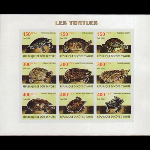 | IVORY COAST 2009 Sheet-Turtles Imperf. |