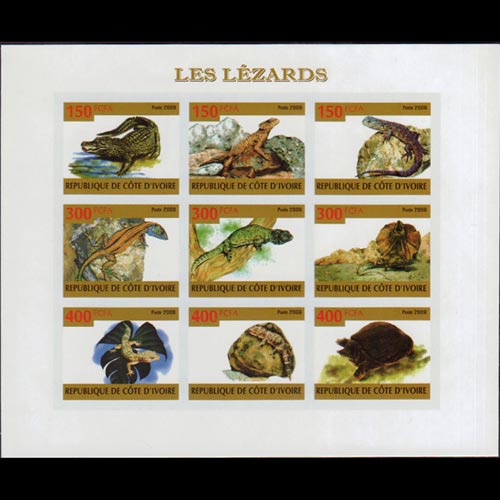 | IVORY COAST 2009 Sheet-Lizards Imperf. |
