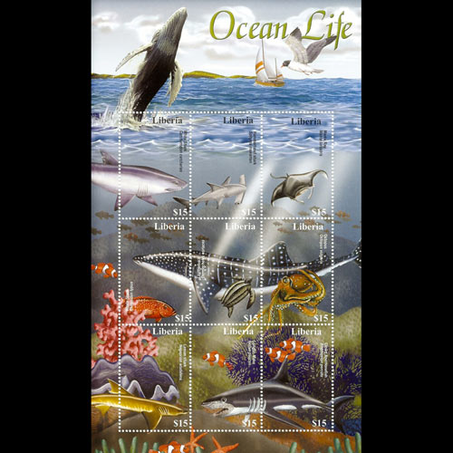 利比里亚-非官方邮品 2001年 版张-海洋生物 |