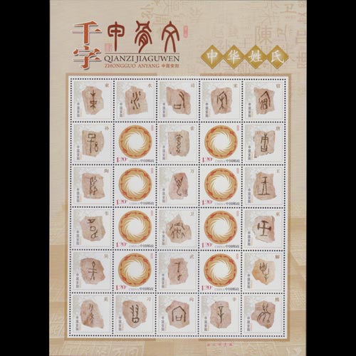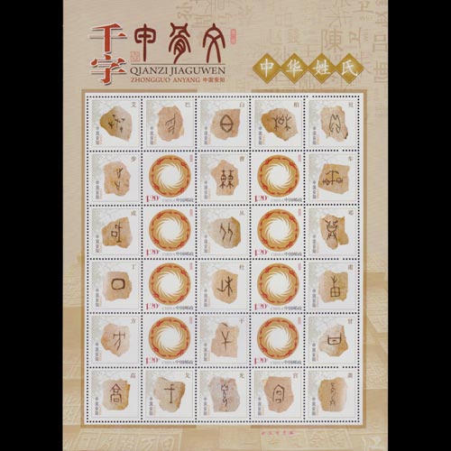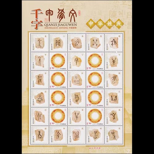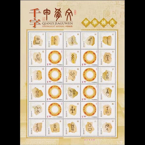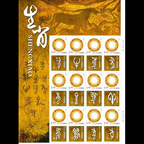 | 十二生肖甲骨文字个性化大版。面值14.40元。