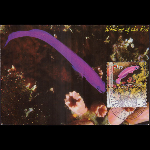 | 说明:贴红海鱼类(1.3s)。首日纪念戳。 |