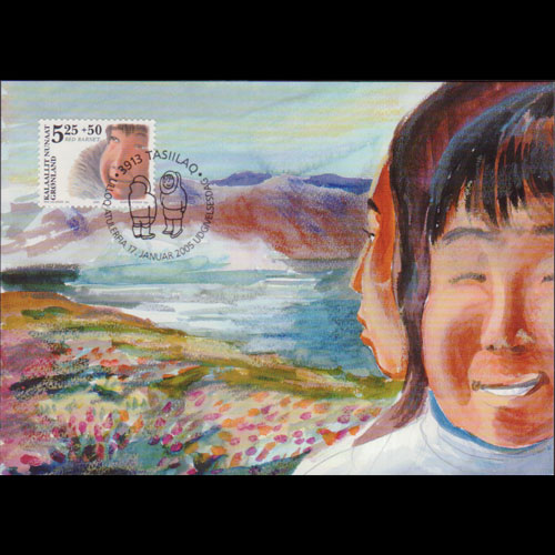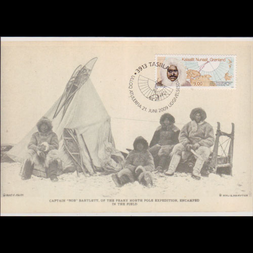 | 说明:贴北极探险家汉森和地图。首日纪念戳。 |