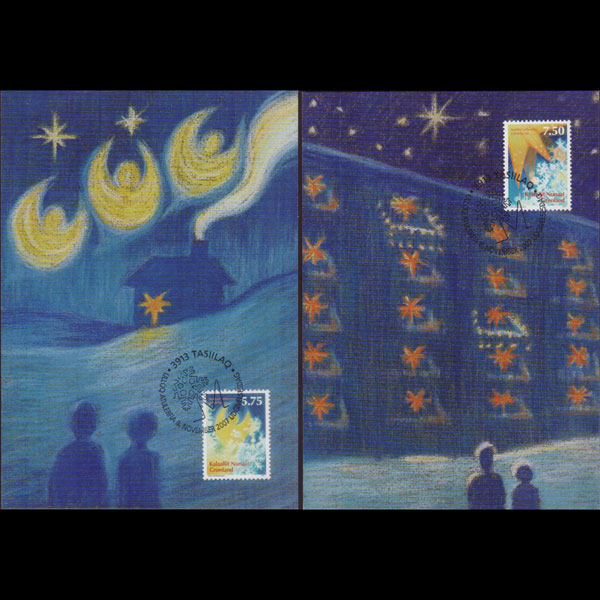 | 说明:贴圣诞节-天使和雪花等2全。首日纪念戳。共2枚。 |