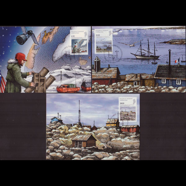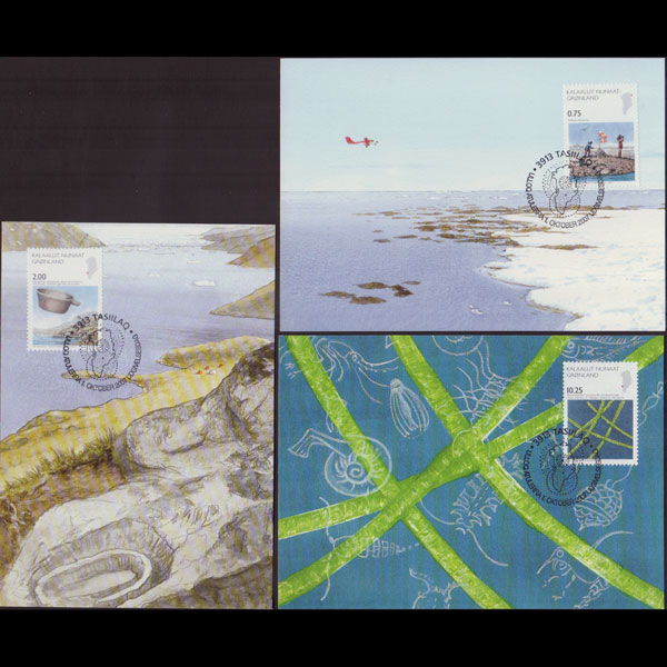 | 说明:贴科学考察-北极基地等3全。首日纪念戳。共3枚。 |