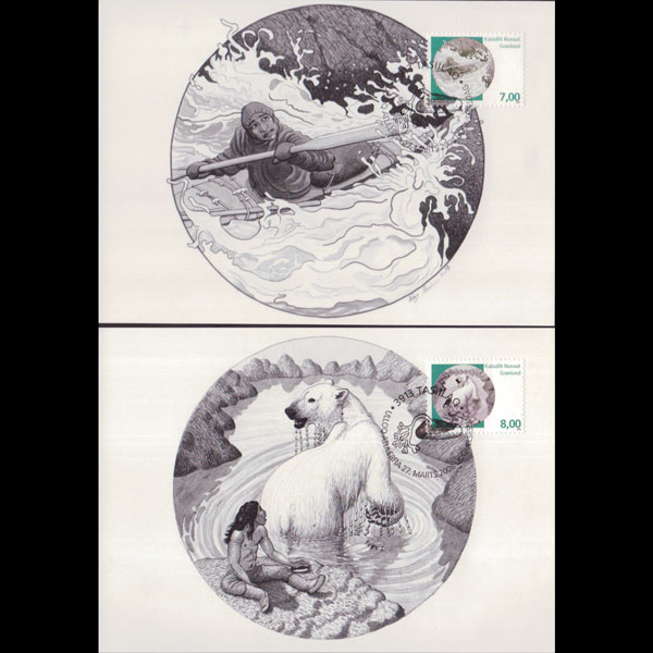 | 说明:贴北欧神话-北极熊等2全。首日纪念戳。共2枚。 |