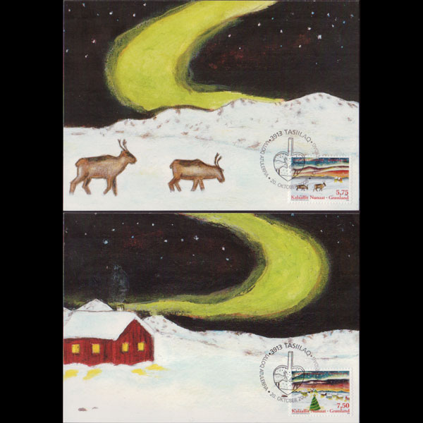 | 说明:贴圣诞节-驯鹿和村落2全。首日纪念戳。共2枚。 |