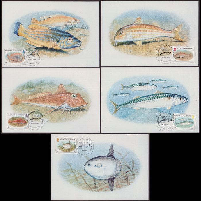 | 说明:贴本地鱼类5全。首日纪念戳。共5枚。 |
