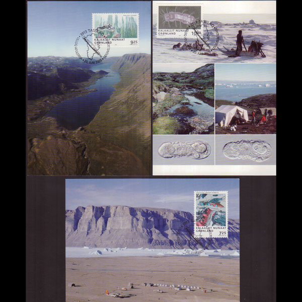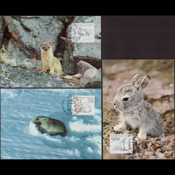 | 说明:贴极地动物-白鼬和北极兔等3全。首日纪念戳。共3枚。 |