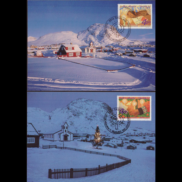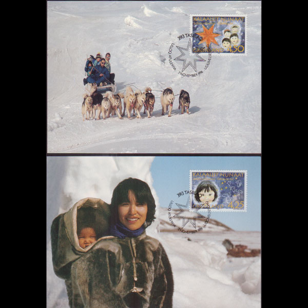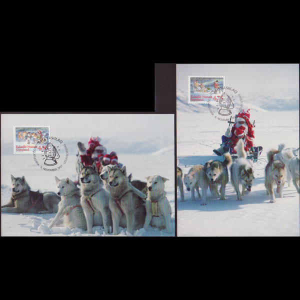 | 说明:贴圣诞节-狗和雪橇2全。首日纪念戳。共2枚。 |