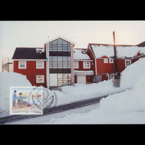 | 说明:贴格陵兰残疾人-轮椅1全。首日纪念戳。 |