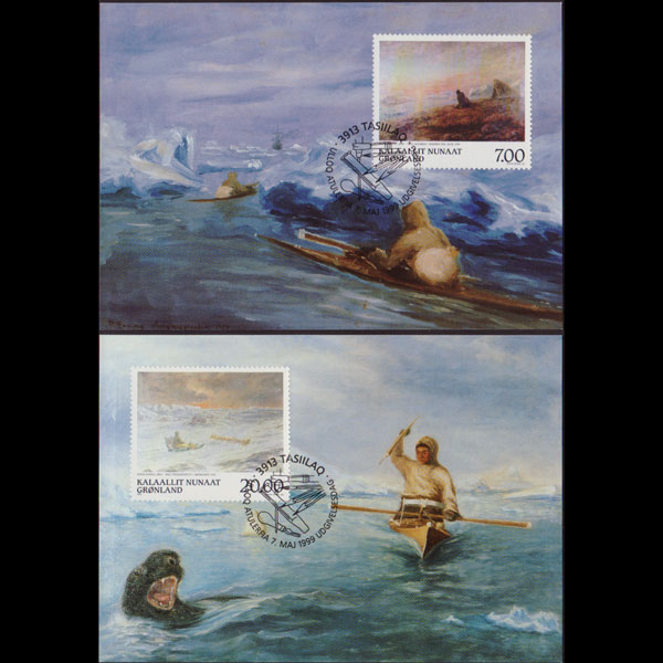 | 说明:贴北极圈维京人狩猎海象(25o)。首日纪念戳。 |