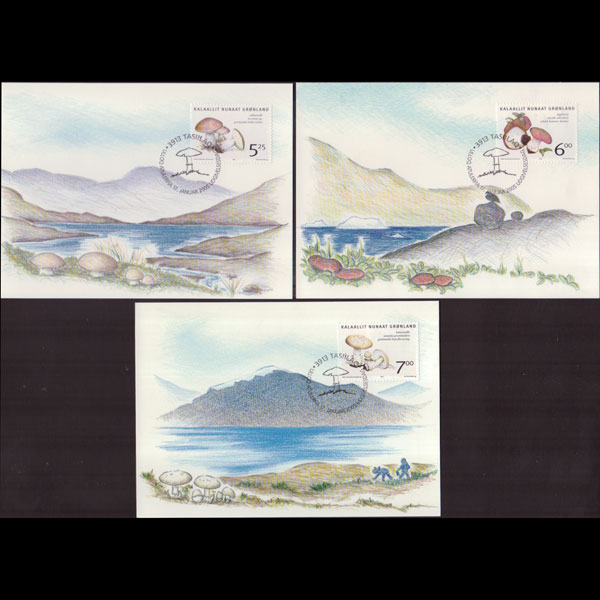 | 说明:贴蘑菇3全。首日纪念戳。共3枚。 |