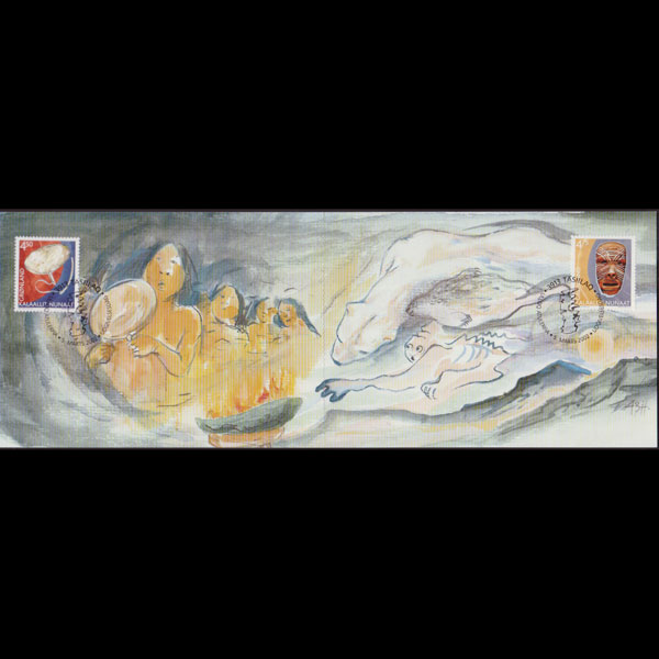 | 说明:贴文化遗产-手鼓和面具2全。首日纪念戳。共2枚。 |