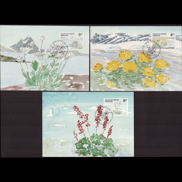 | 说明:贴北极圈植物花卉(1990年组)3枚。首日纪念戳。共3枚。 |
