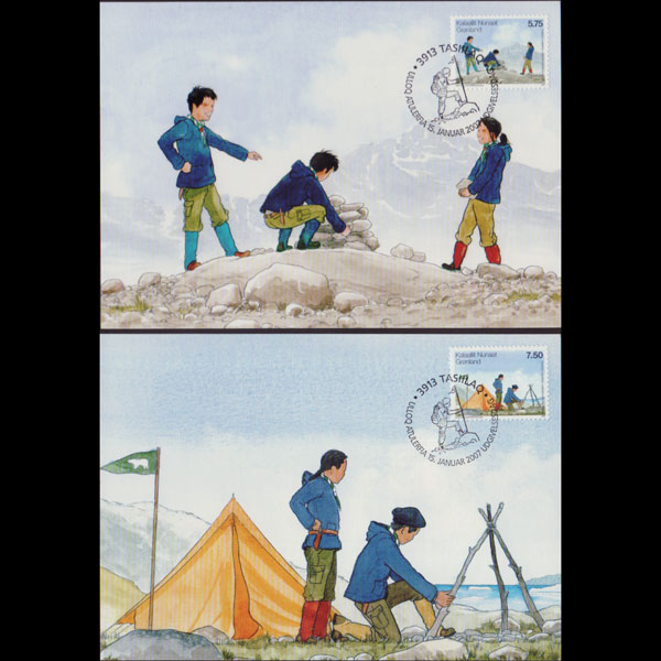 | 说明:贴欧罗巴-童子军百年2全。首日纪念戳。共2枚。 |