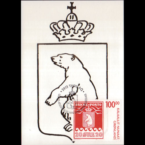 | 说明:贴包裹邮票百年-北极熊岛徽2全。首日纪念戳。共2枚。 |