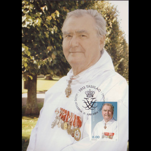 | 说明:贴丹麦女王玛格丽特(50o)。首日纪念戳。 |