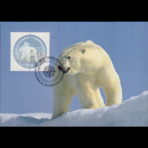 | 说明:贴北极熊(圆形票)1全。首日纪念戳。 |