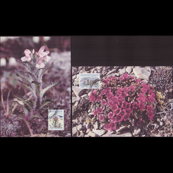 | 说明:贴北极植物花卉(1992年组)2枚。首日纪念戳。共2枚。 |