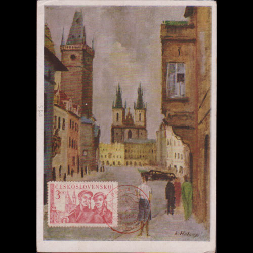| 说明:贴国庆5周年-工人和布拉格市政厅(3)。首日纪念戳。 |
