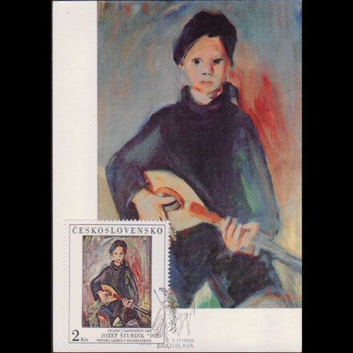 | 说明:贴斯托尔迪克绘画-弹琴少年(2k)。首日纪念戳。 |