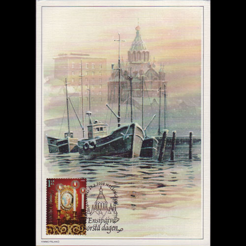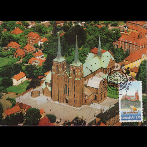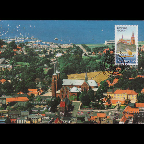 | 说明:贴罗斯基勒市千年-建筑和帆船1全。首日纪念戳。 |