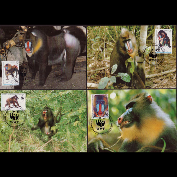 | 说明:贴WWF-山魈4全。共4枚。首日纪念戳。 |