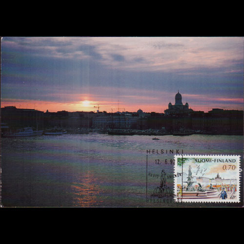 | 说明:贴1973年发行美人鱼雕像喷泉(70p)。纪念戳12.6.92。 |
