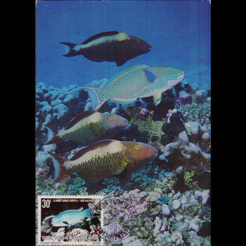 | 说明:贴同年发行热带鱼类-鹦鹉鱼(30f)。日戳19-51982。 |