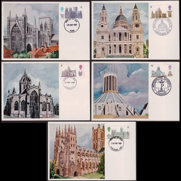 | 说明:贴英国教堂-建筑(5p-1.6s)。首日戳。共5枚。 |