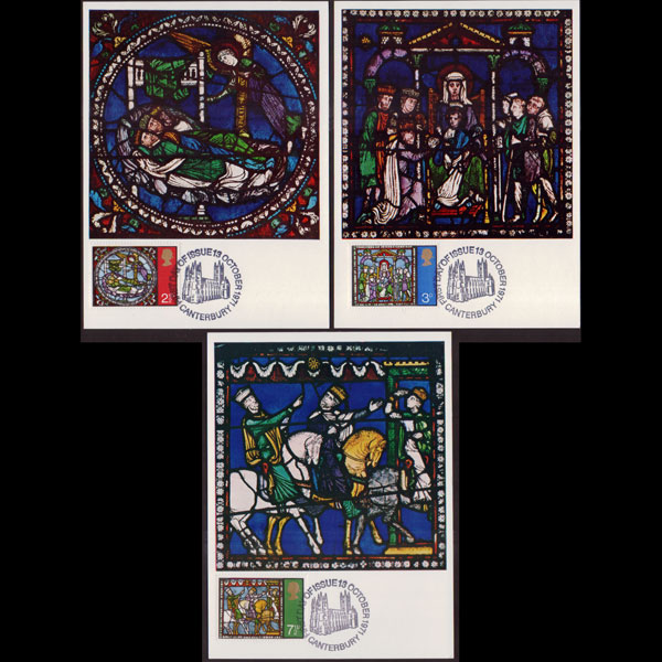 | 说明:贴圣诞节-教堂窗饰画3全。首日纪念戳。共3枚。 |