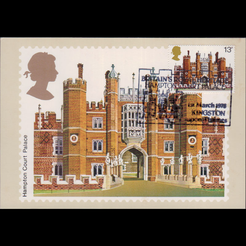 | 说明:贴英国建筑-伦敦汉普敦宫(13p)。首日纪念戳。 |