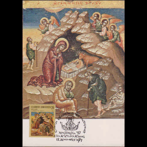 | 说明:贴1984年发行圣诞节18世纪圣像画(14d)。1997年纪念戳。 |