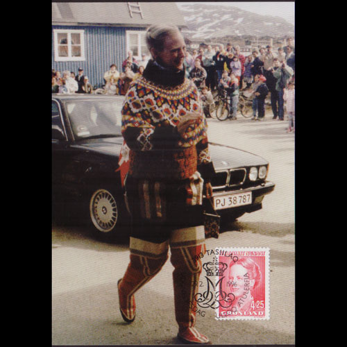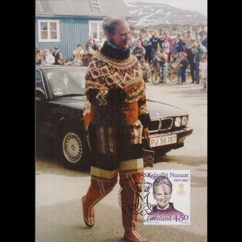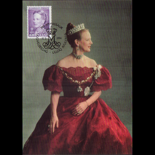 | 说明:贴丹麦女王玛格丽特(7k)。首日纪念戳。 |