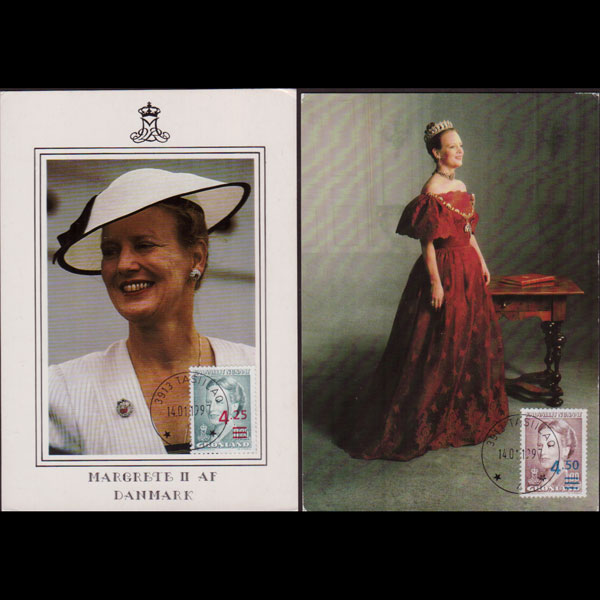 | 说明:贴1995年发行丹麦女王(改值)2枚。日戳14.01.97。共2枚。 |