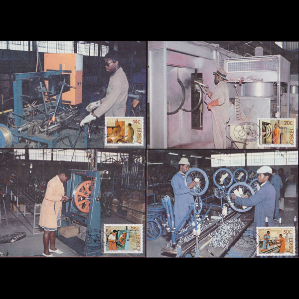 | 说明:贴自行车制造-电焊和装配等4全。首日纪念戳。共4枚。 |