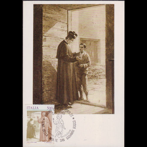 | 说明:贴天主教撒肋爵会创始人圣若望·鲍思高1全。首日纪念戳。 |
