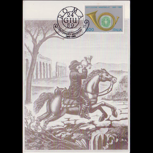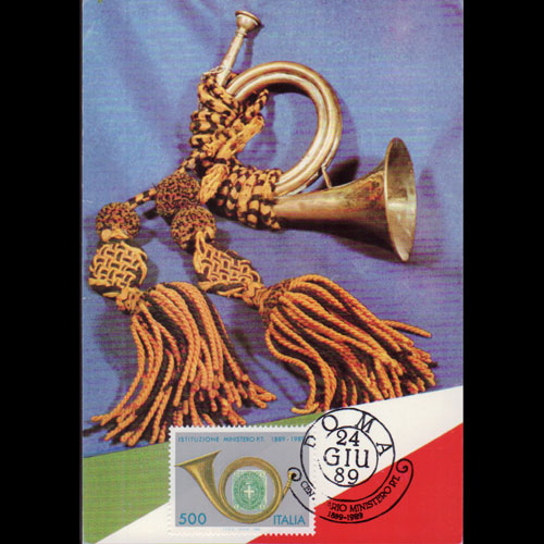 | 说明:贴邮电部百年-号角(500l)。首日纪念戳。 |