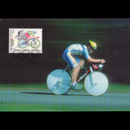 | 说明:贴现代奥运百年-自行车(1.1f)。首日纪念戳。 |