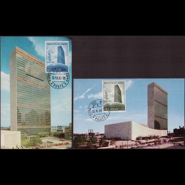 | 说明:贴同年发行教皇访问联合国2枚(30-15l)。共2枚。 |
