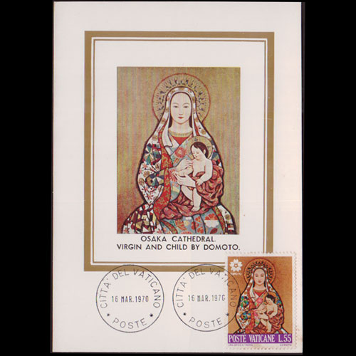 | 说明:贴大阪世博会-圣母与子(55l首日纪念戳)。首日戳。 |