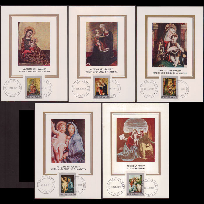 | 说明:贴圣母子绘画-乔凡尼等5全。首日戳。共5枚。 |