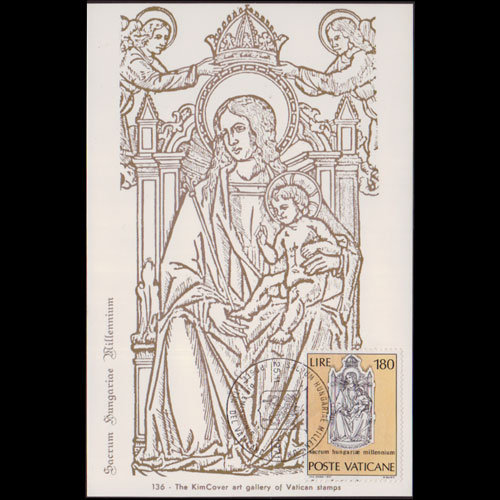 | 说明:贴匈牙利圣母(180l)。首日戳。 |