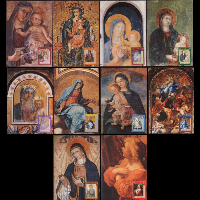 | 说明:贴梵蒂冈教堂圣母绘画10全。首日纪念戳。共10枚。 |