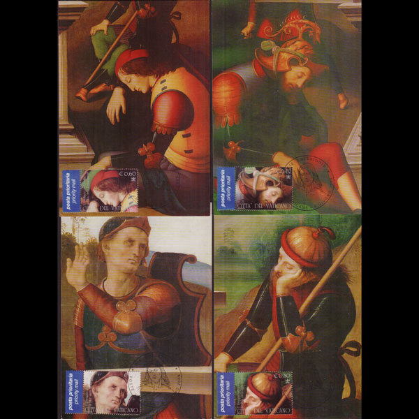 | 说明:贴佩鲁吉诺绘画4全。首日纪念戳。共4枚。 |