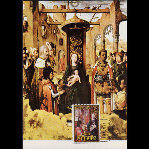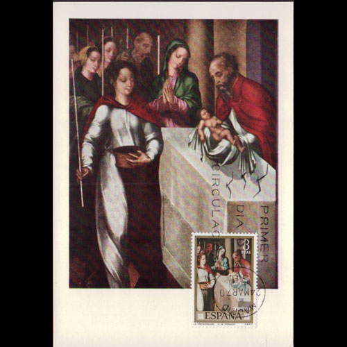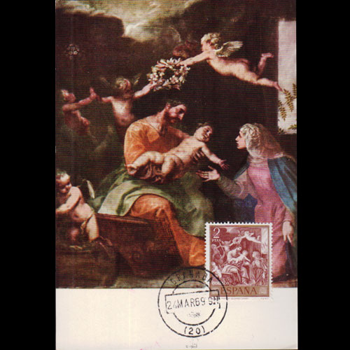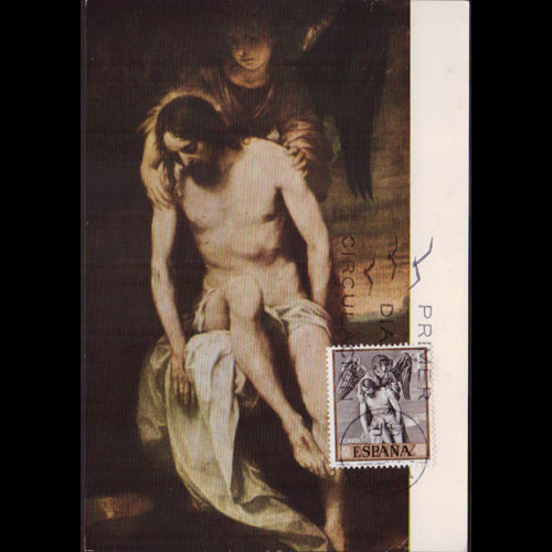 | 说明:贴胡安·代·朱尼绘画(3p)。首日纪念戳。 |