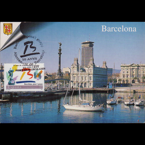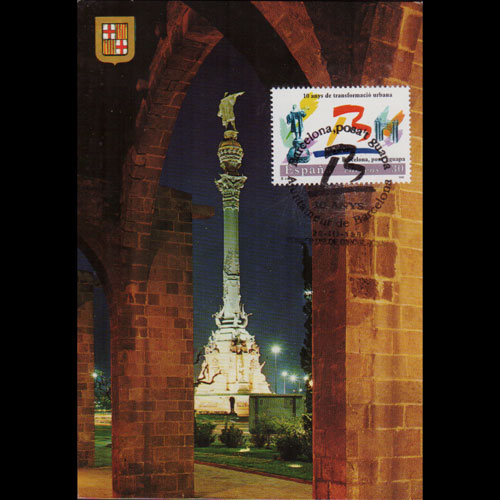 | 说明:贴巴塞罗那雕像和拱门-城市改造1全。首日纪念戳。 |